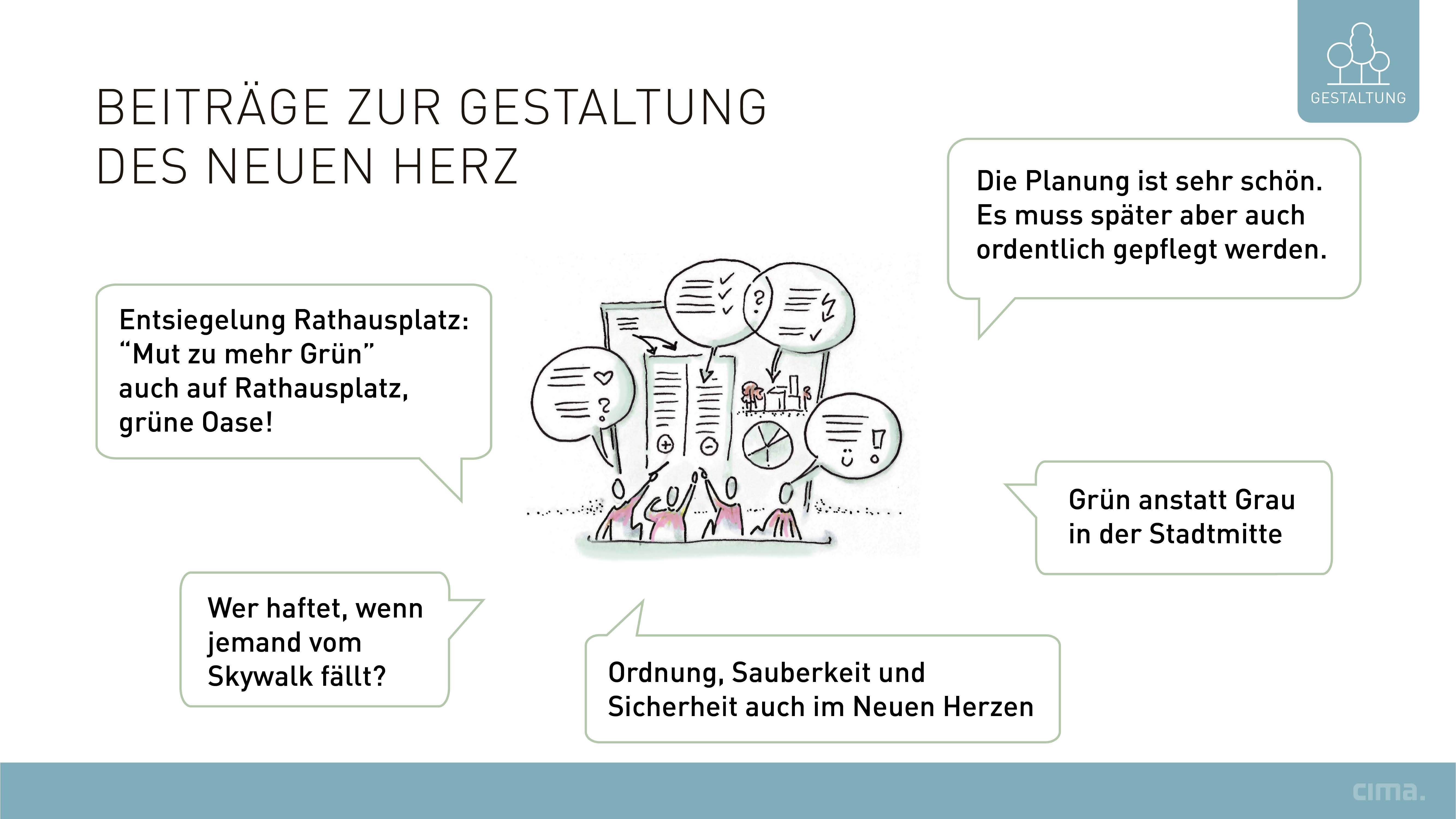Naß: Die Beteiligung war ein Meilenstein. Die 94 % Zustimmung zum Projekt zeigen bereits viel. Doch auch die Begeisterung war spürbar. Die Oase wurde mit 100 % Zustimmung aufgenommen, die Tiefgarage mit 85 %, die Wandelfähigkeit zur Eventnutzung sogar mit 88 %. Wenn man Menschen ernst einbezieht, entsteht nicht nur Akzeptanz, sondern auch Stolz. Das Besondere am Neuen Herz ist genau das, ein gemeinsames Projekt. Grabner: Für uns in der Planung war die Beteiligung unglaublich wertvoll. Hinweise der Bürgerschaft – etwa zu Wegeverbindungen, schattigen Liegeflächen oder flexiblen Nutzungsflächen wurden direkt integriert. Es ist ein gutes Gefühl zu wissen, dass Menschen sich aktiv mit dem Ort auseinandergesetzt haben. Das macht öffentlichen Raum funktionaler und lebendiger.